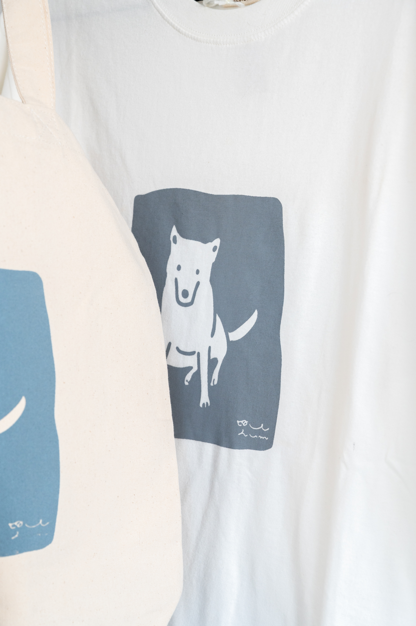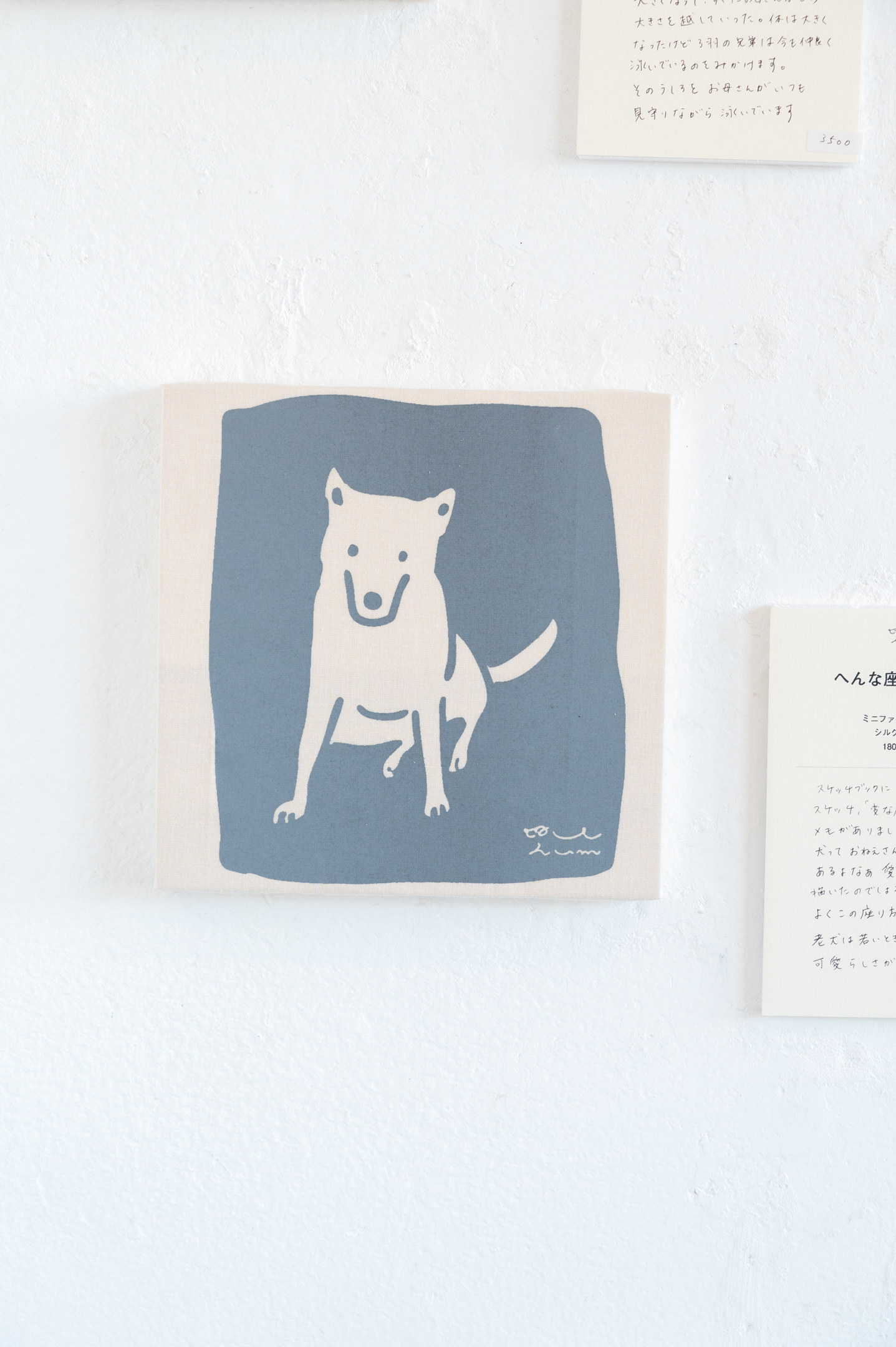犬っておねえさんみたいに座ることあるよな、愛おしいなと思って描いたのでしょうか。老犬になるとよくこの座り方をする気がします。老犬は若い時の犬とはまたちがった可愛らしさがありますよね。