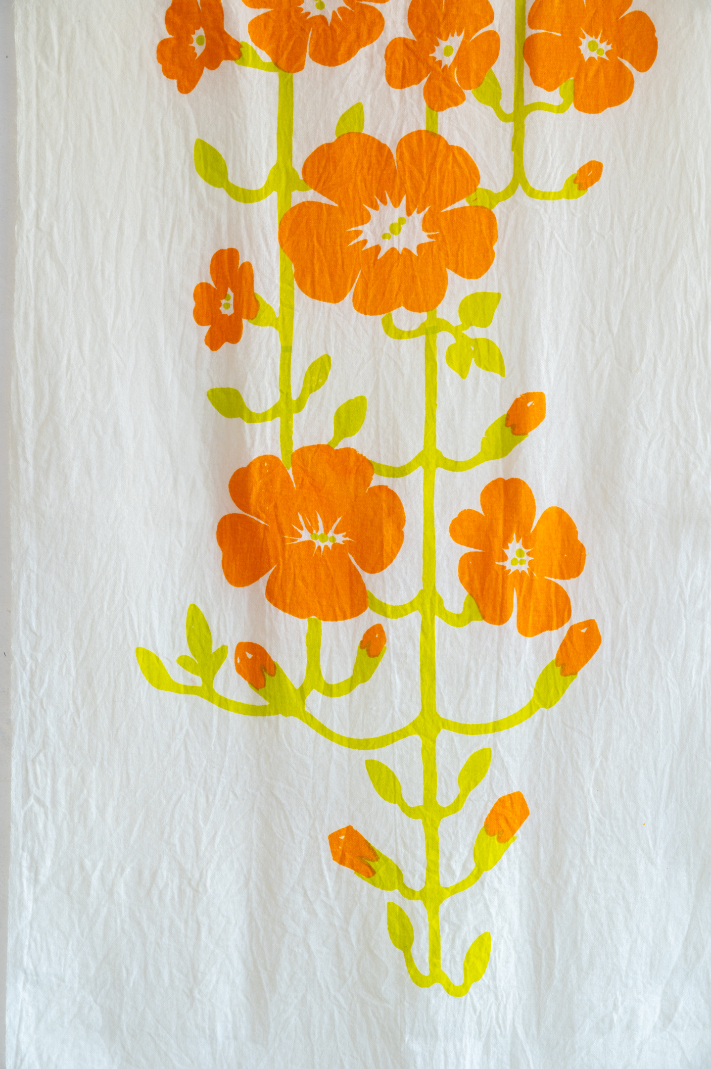 初夏頃、オレンジのきれいな庭木がたくさん散歩道に咲いていました。名前を調べたらノウゼンカズラっていうらしい、あっ安藤裕子の曲の花ってこれなんだね〜!という会話があって制作しました。曲を聴きながら作ったけど、いい曲だよね〜