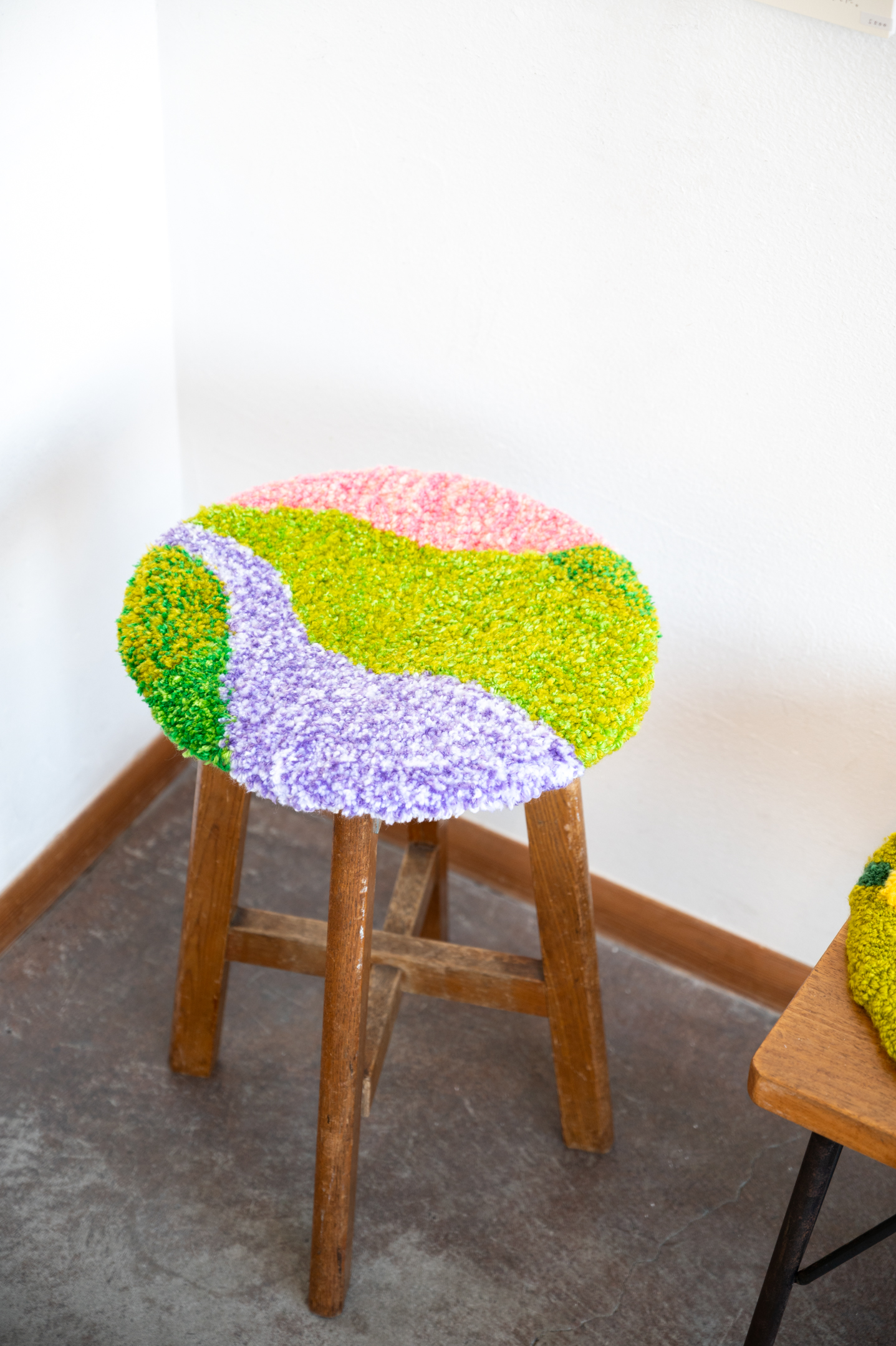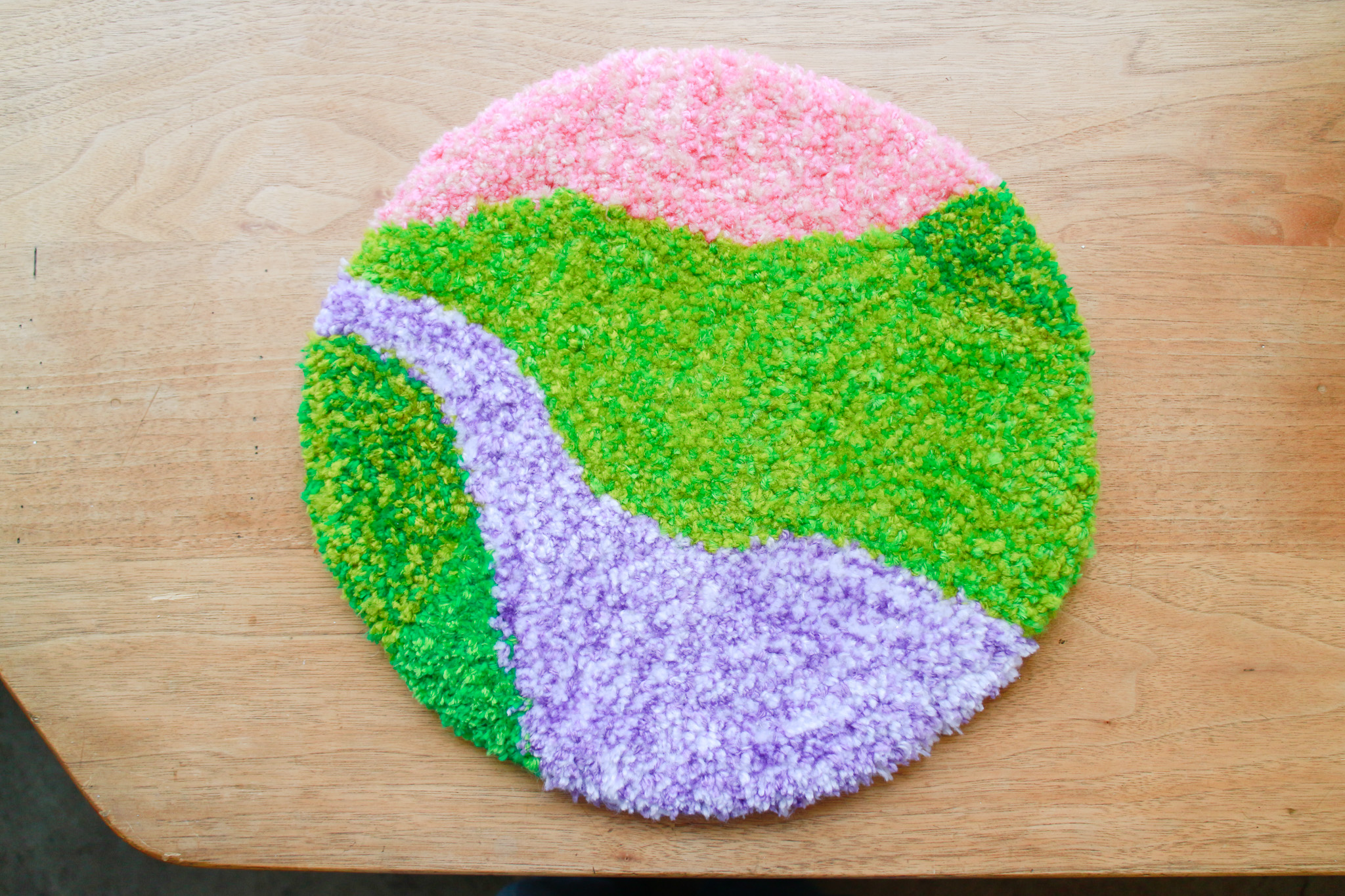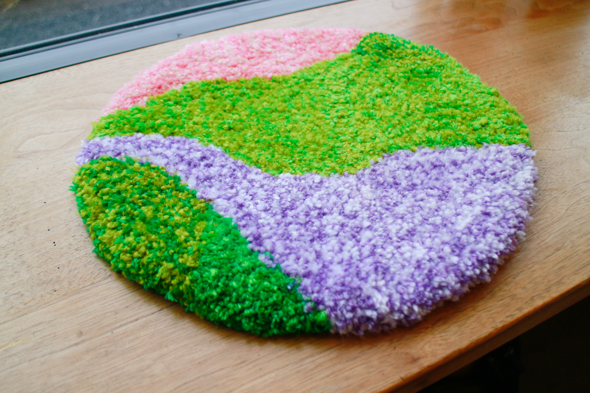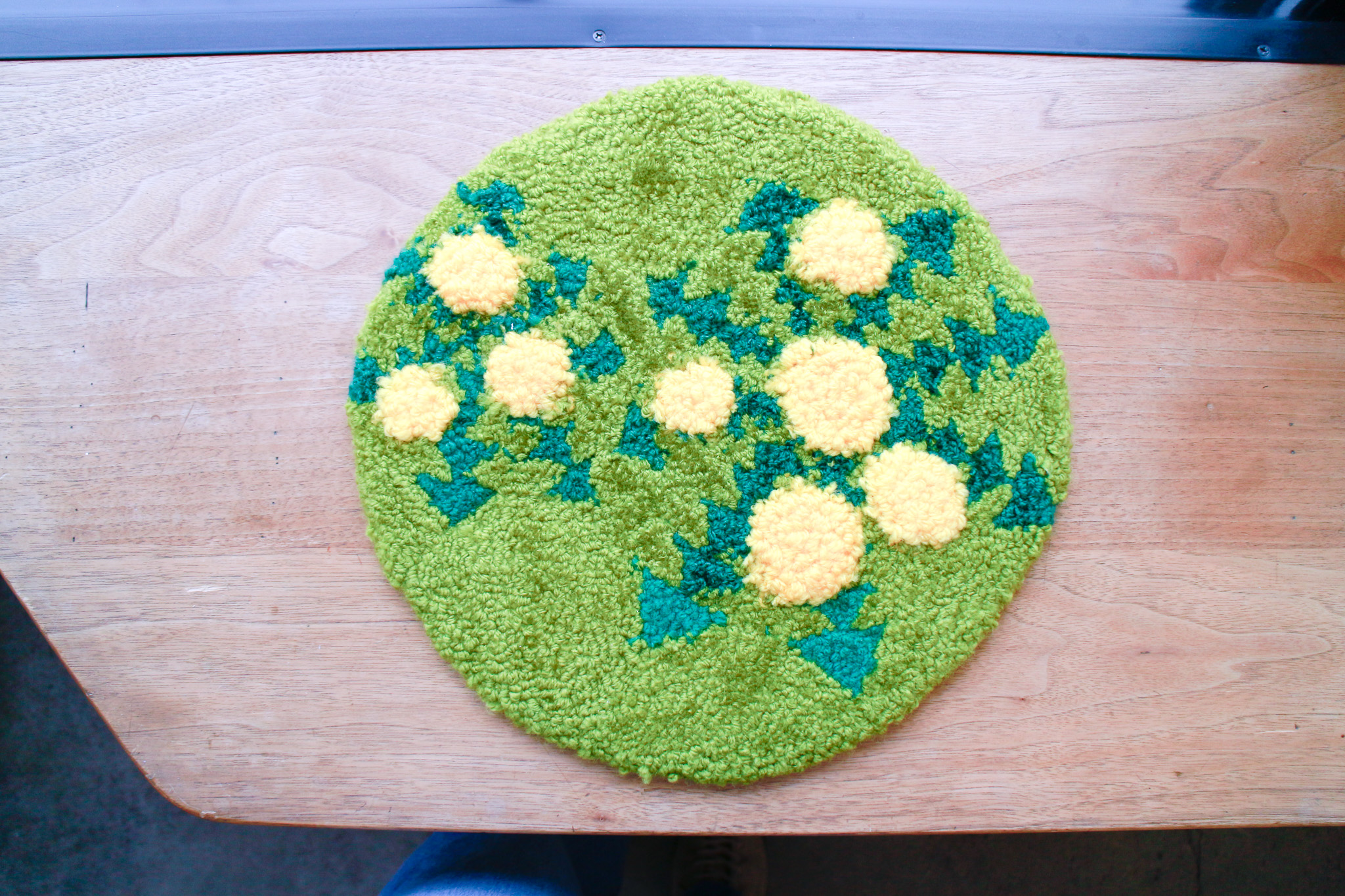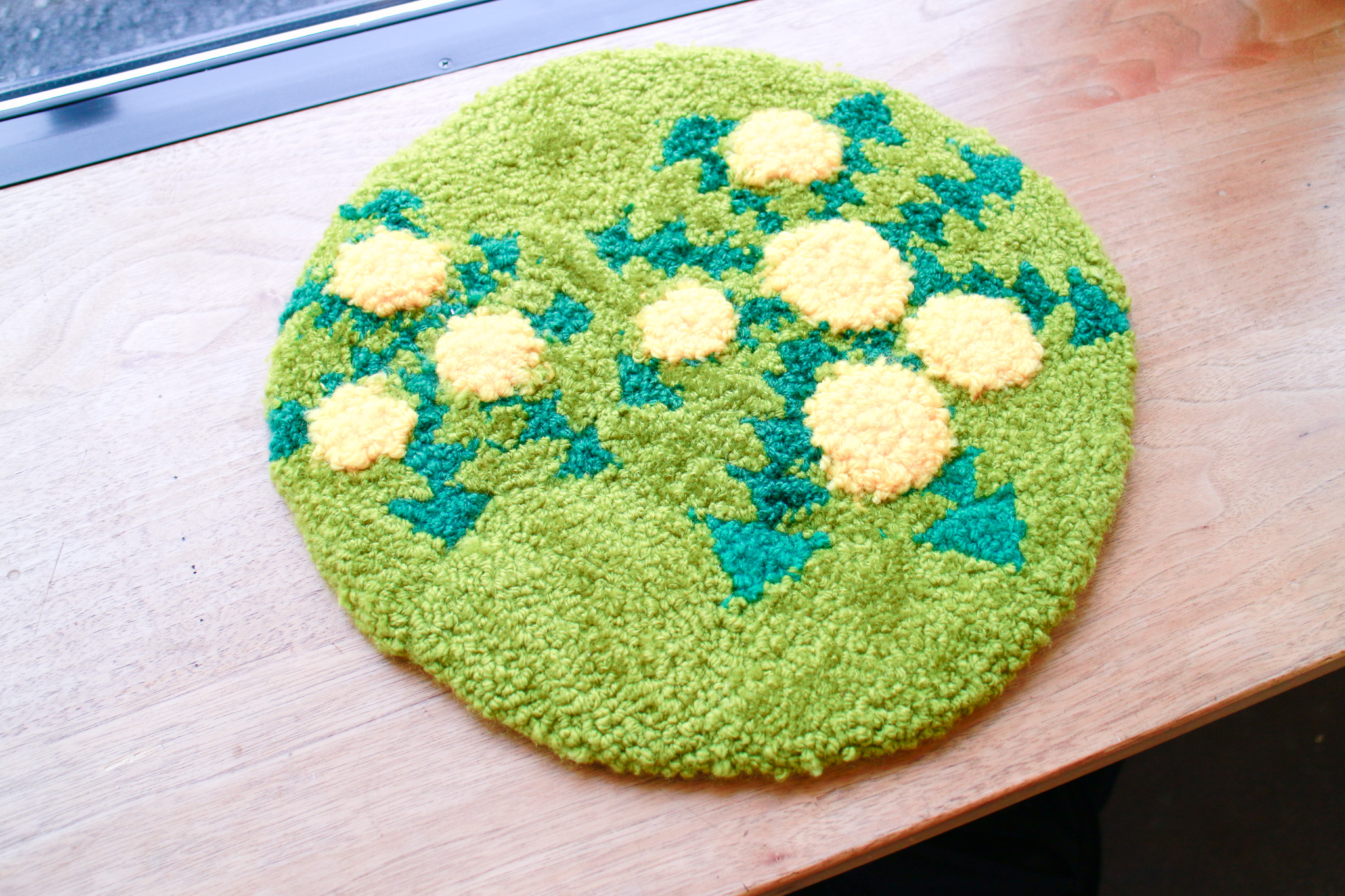 海と山のある小さな町の、のんびりした春を感じるパンチニードルマット