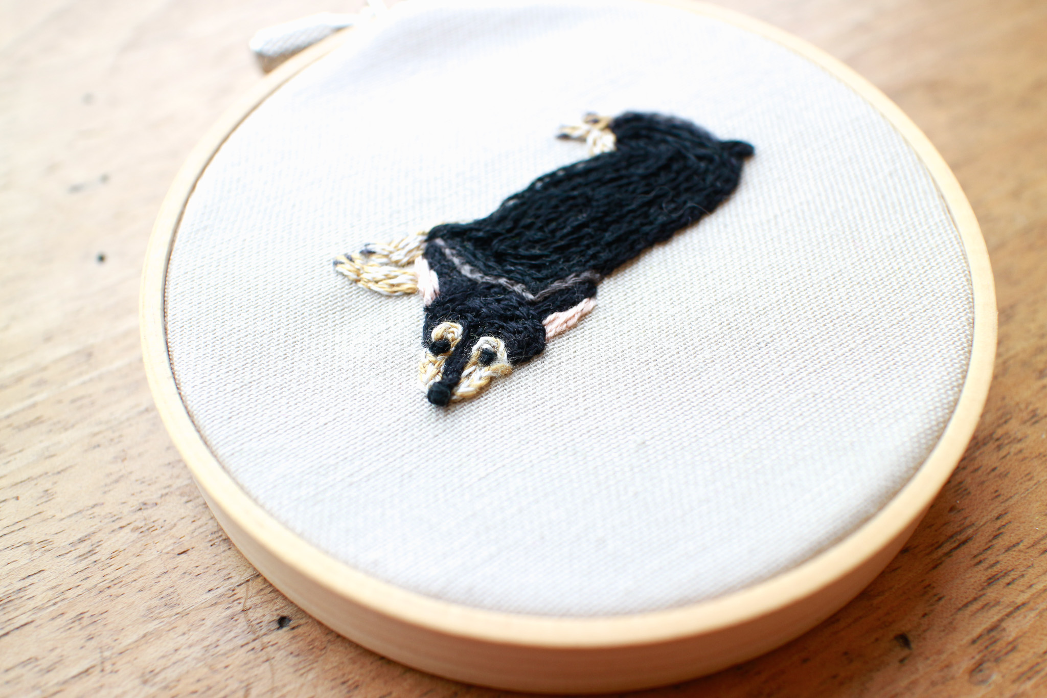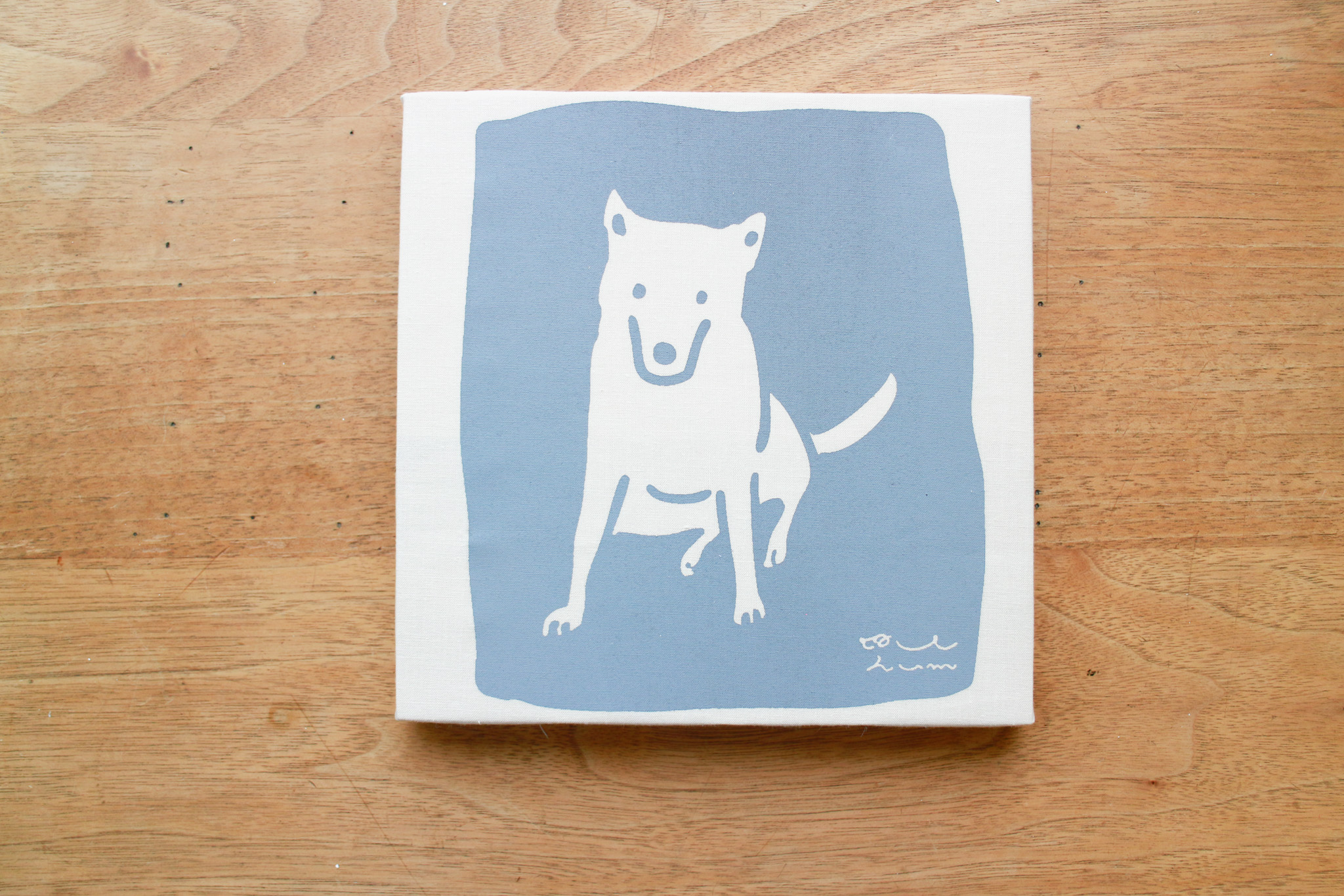 スケッチブックに走り書きしてあった犬のファブリックパネル