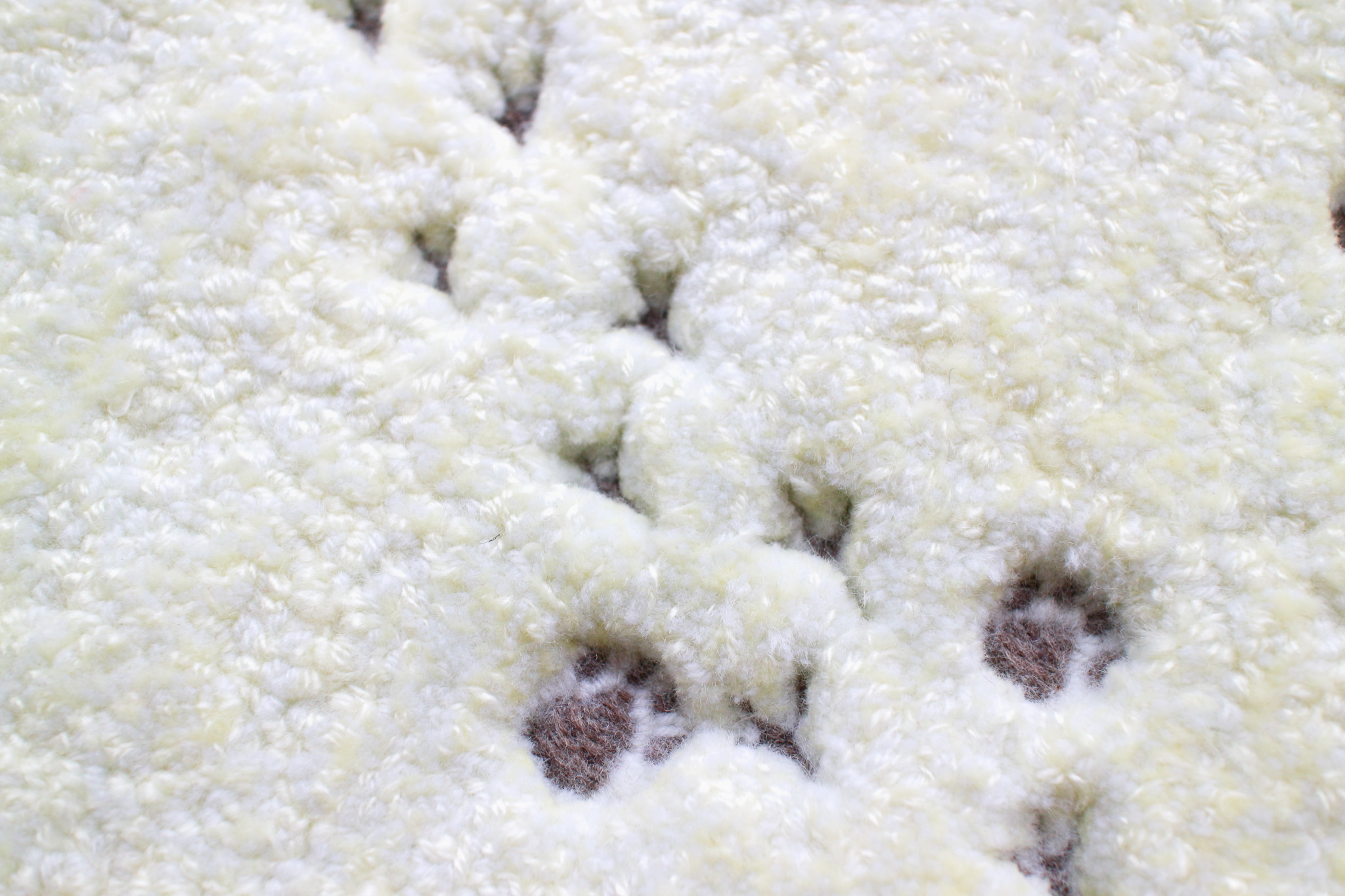 雪の日の朝、小さな足跡が残る雪の上をイメージしたパンチニードルマット