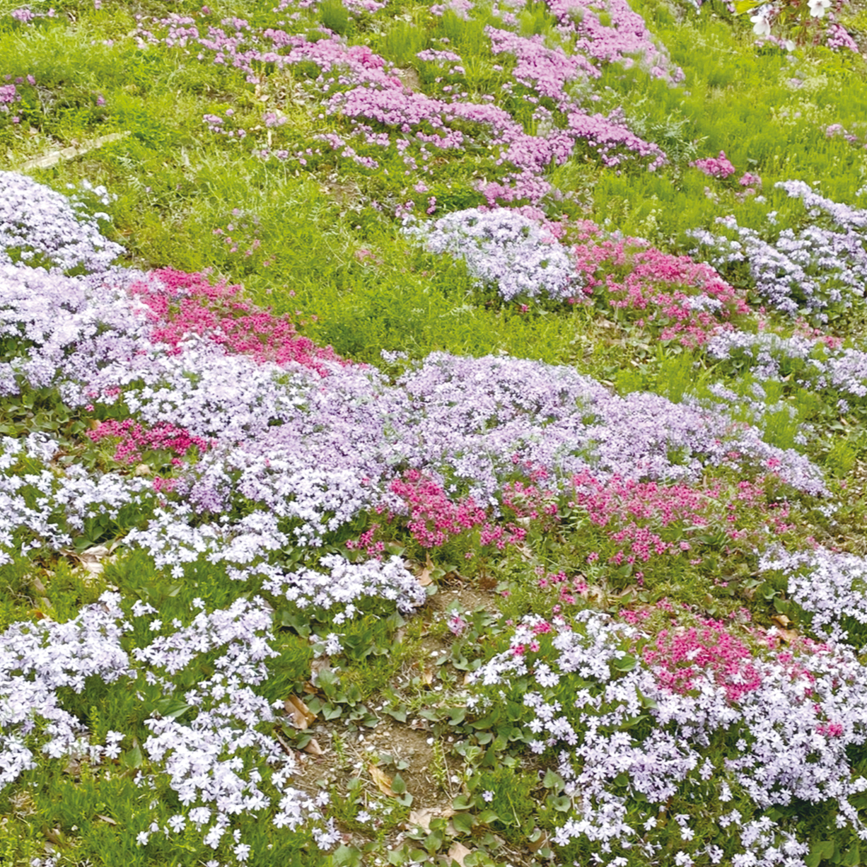 でも芝桜よりも緑の方が多くて、山を整備するおじいさんいわく「今年はちょっとやる気がない」そう。そんなゆるい空気。緑と紫とピンクのコントラストがきれいで、町ののんびりとした時間を感じながら制作しました。
